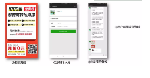 个人号转发裂变的方式是转化路径中最短的,其方式就是用海报作为启动方式,扫码就是添加个人号,个人号引导用户进行转发,截图后才能领取福利奖品。