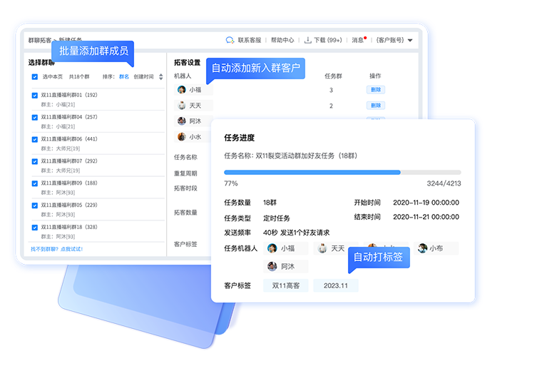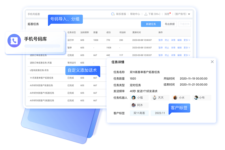 接口数据同步、自动拓客、自动打客户标签,渠道来源