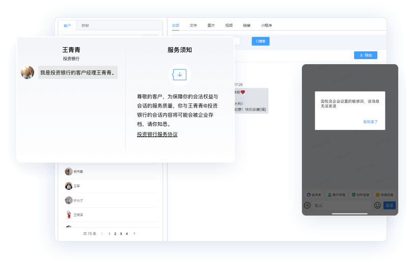 会话存档提供会话分析、聊天数据回溯追踪、敏感提醒、智能标签。
