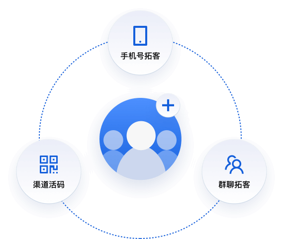 主动拓客、联系码、渠道活码、打通电销系统、发送加微短链。
